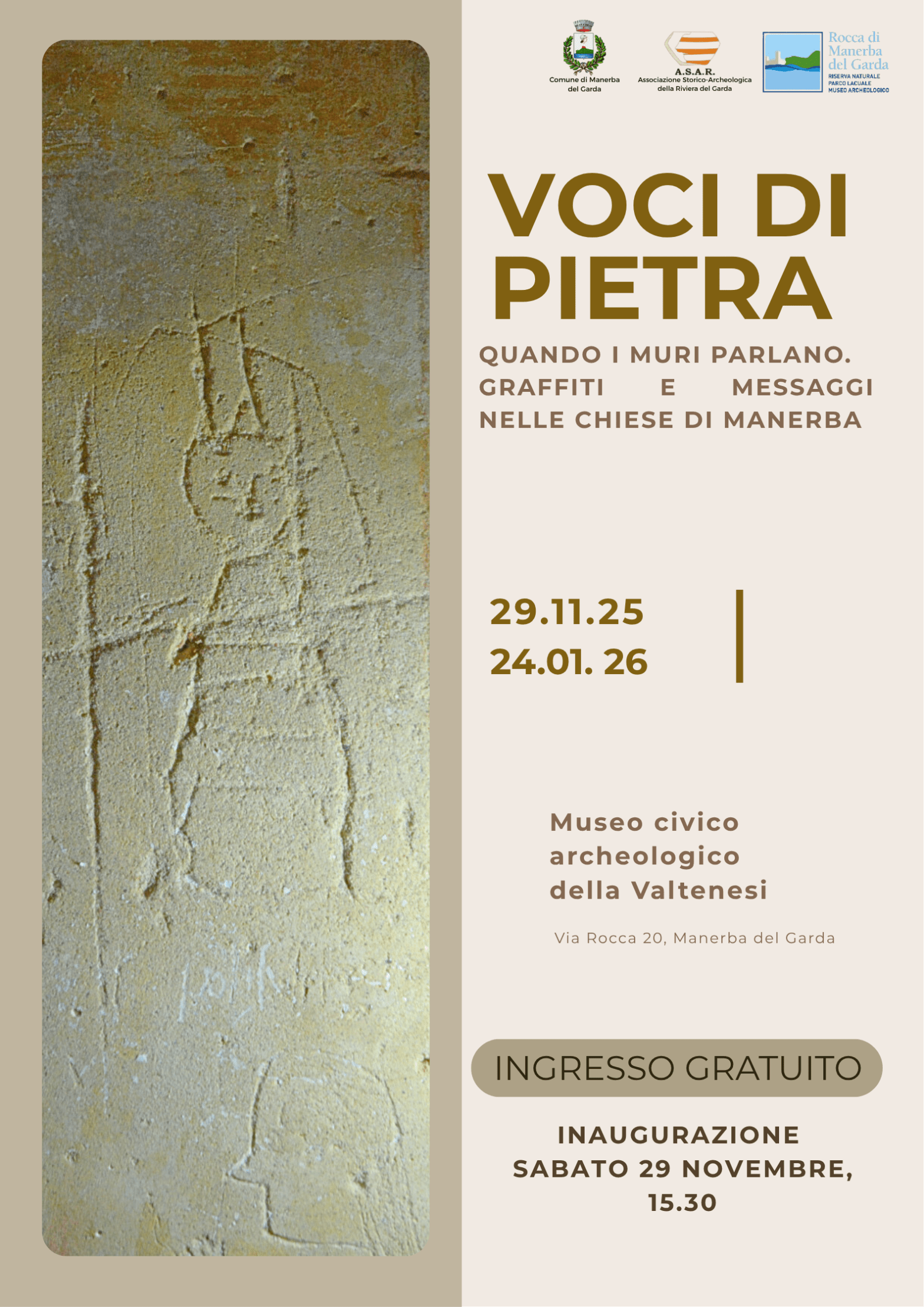 Martedì 23 dicembre, alle 15.30, al Museo Civico Archeologico della Valtenesi, si inaugurerà la mostra Voci di pietra. Quando i muri parlano. Graffiti e messaggi nelle chiese di Manerba. Scaturita dalle ricerche svolte da Davide Amadori, Monica Ibsen e Gian Pietro Brogiolo, la mostra vuole essere un viaggio vattraverso le immagini, alla scoperta della vitaContinua a leggere “Voci di pietra.”