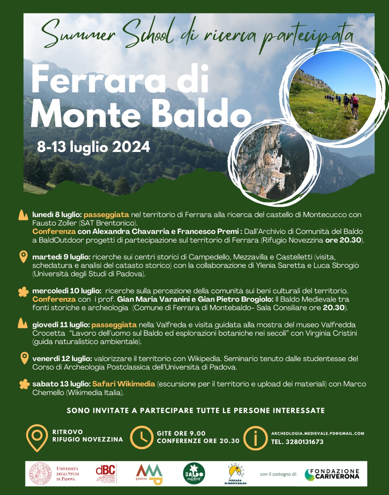 Da lunedì 8 luglio a sabato 13, a Ferrara di Monte Baldo, si svolgerà una summer school, organizzata dall’Università di Padova. Di seguito il programma completo.
